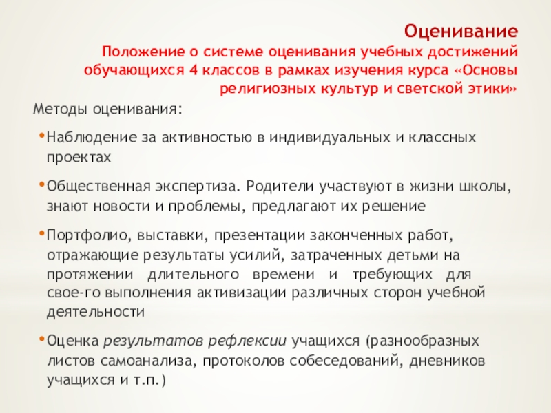 Положение о системе оценивания учебных достижений обучающихся 4 классов в