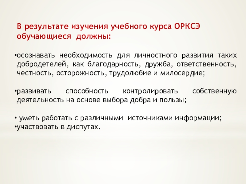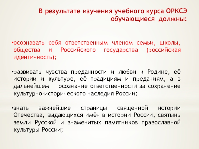 В результате изучения учебного курса ОРКСЭ обучающиеся должны: