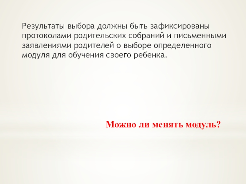 собраний и письменными заявлениями родителей о выборе определенного модуля для обучения своего ребенка.