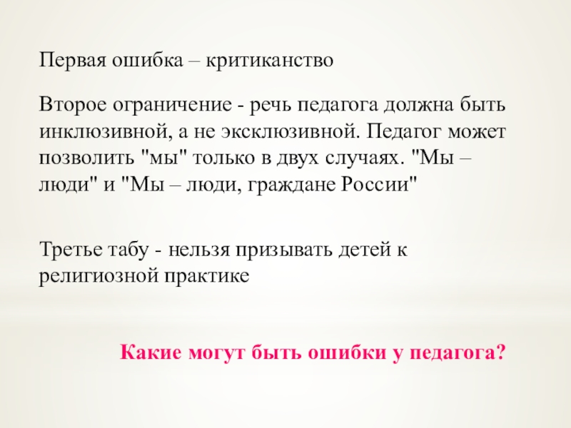 Слайд 46Какие могут быть ошибки у педагога?