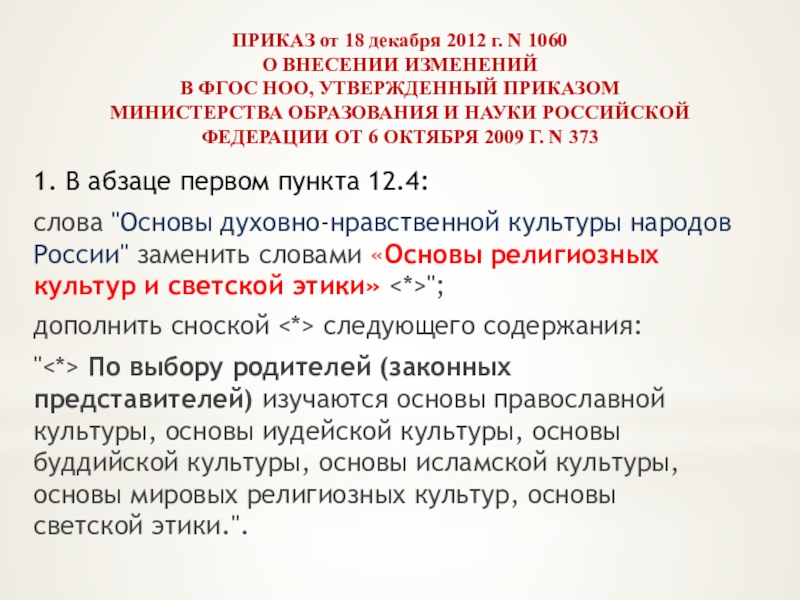 Слайд 5ПРИКАЗ от 18 декабря 2012 г. N 1060
