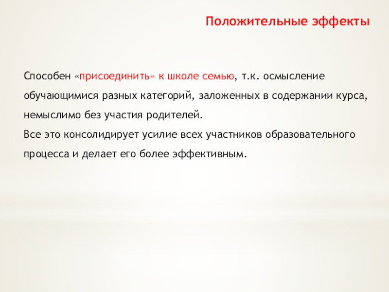 Слайд 15Положительные эффекты