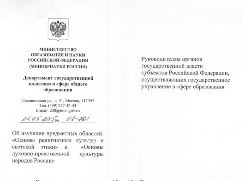 от 22.08.2012 № 08-250 «О введении учебного курса ОРКСЭ».