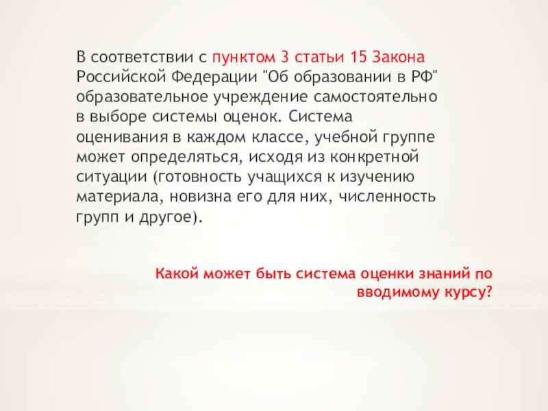 Слайд 38Какой может быть система оценки знаний по вводимому курсу?