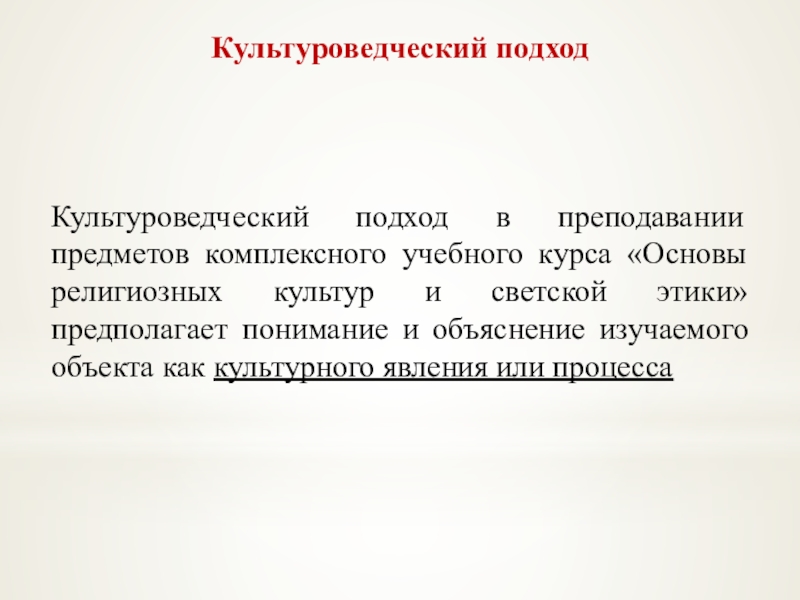 Культуроведческий подход в преподавании предметов комплексного учебного курса «Основы религиозных