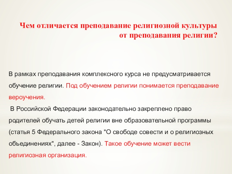курса не предусматривается обучение религии. Под обучением религии понимается преподавание вероучения.