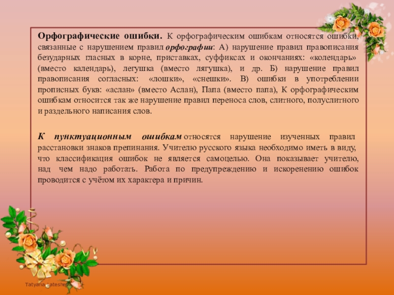 Слайд 14Орфографические ошибки. К орфографическим ошибкам относятся ошибки, связанные с нарушением правил орфографии: