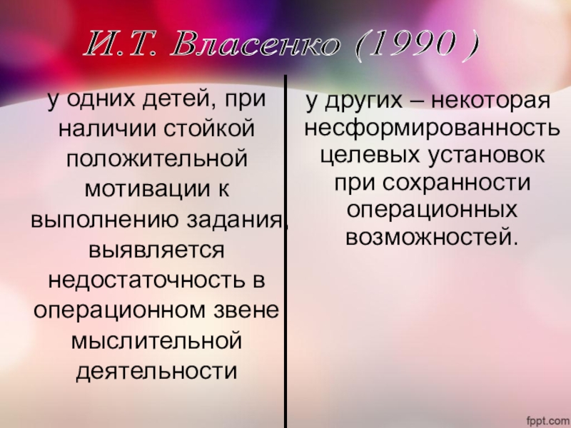 у других – некоторая несформированность целевых установок при сохранности операционных возможностей.