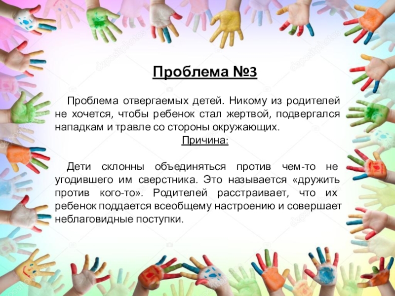 Дети склонны объединяться против чем-то не угодившего им сверстника. Это называется «дружить против кого-то». Родителей расстраивает, что их ребенок поддается всеобщему настроению и совершает неблаговидные поступки.