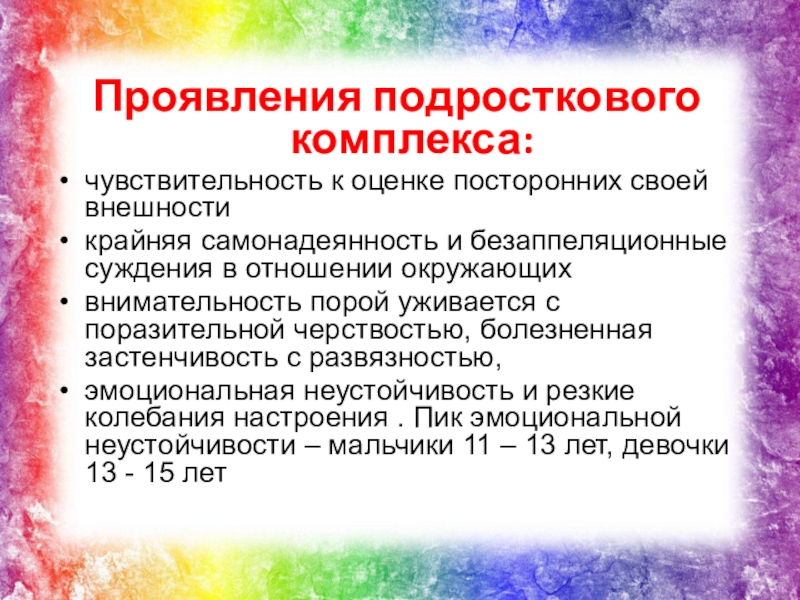 Проявления подросткового комплекса: