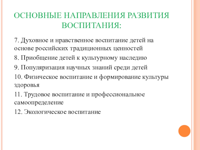 ОСНОВНЫЕ НАПРАВЛЕНИЯ РАЗВИТИЯ ВОСПИТАНИЯ: