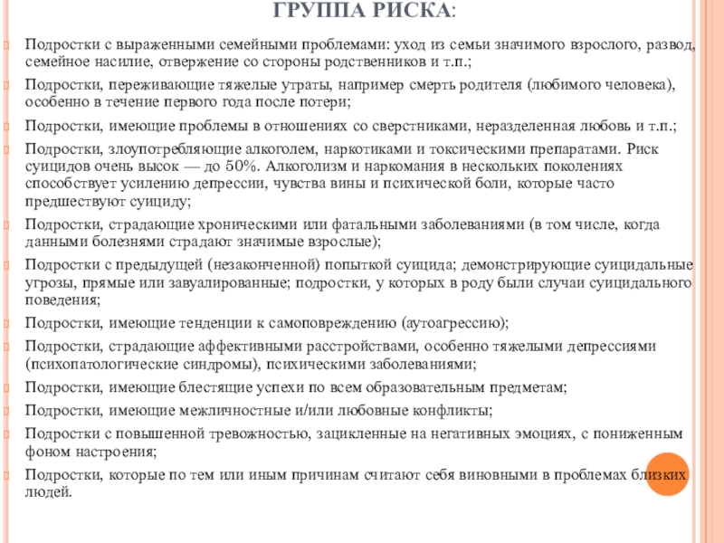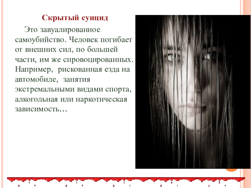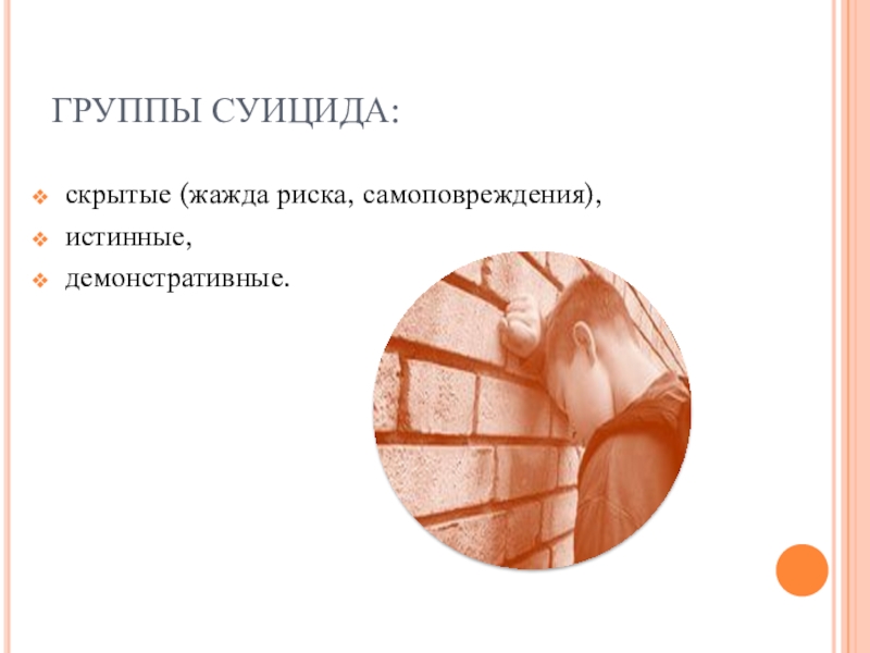 Слайд 1 «ОСОБЕННОСТИ СУИЦИДАЛЬНОГО ПОВЕДЕНИЯ ПОДРОСТКОВ»