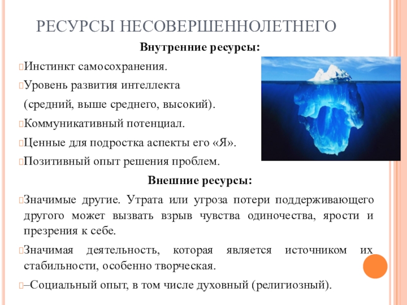 Слайд 38РЕСУРСЫ НЕСОВЕРШЕННОЛЕТНЕГО