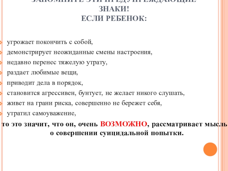 подобных мероприятий (родительских собраний, классных часов) – жизнь кого-то из подростков, так как в подростковой среде возможно повторение суицидальных попыток по механизму подражания, заражения, протестной реакции и др.
