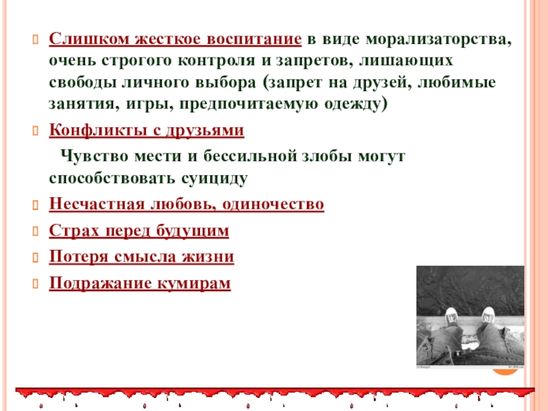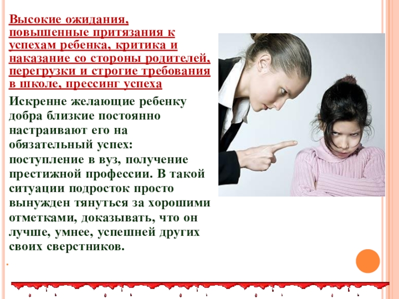 Слайд 17Слишком жесткое воспитание в виде морализаторства, очень строгого контроля и запретов,