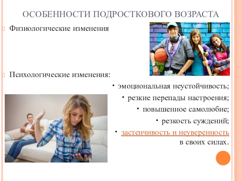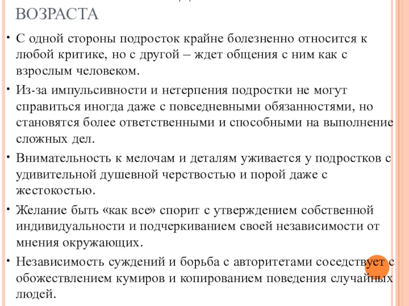 Слайд 6ОСОБЕННОСТИ ПОДРОСТКОВОГО ВОЗРАСТА