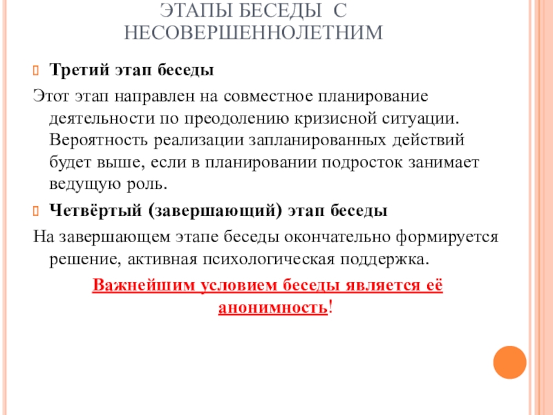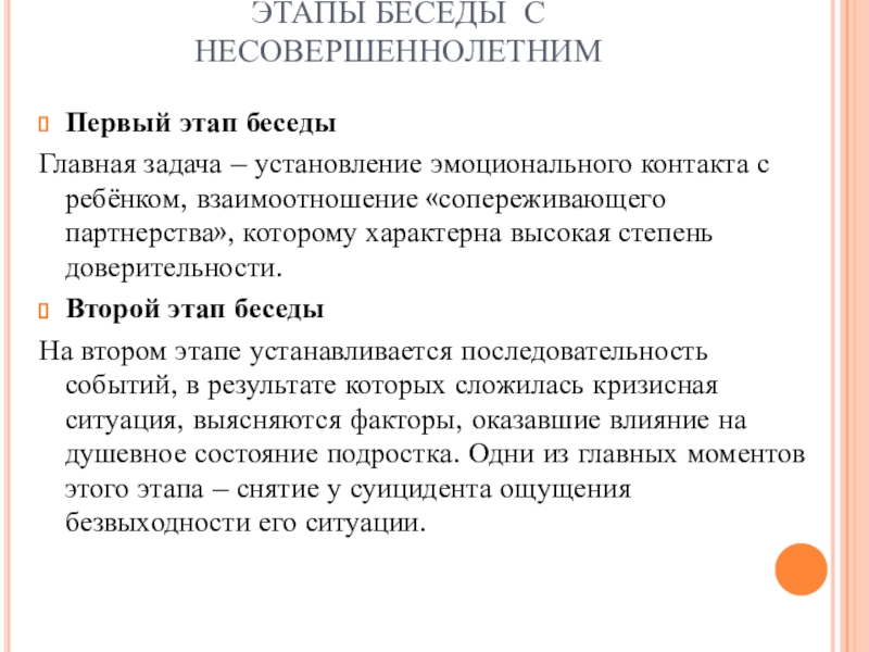 Слайд 33ЭТАПЫ БЕСЕДЫ С НЕСОВЕРШЕННОЛЕТНИМ
