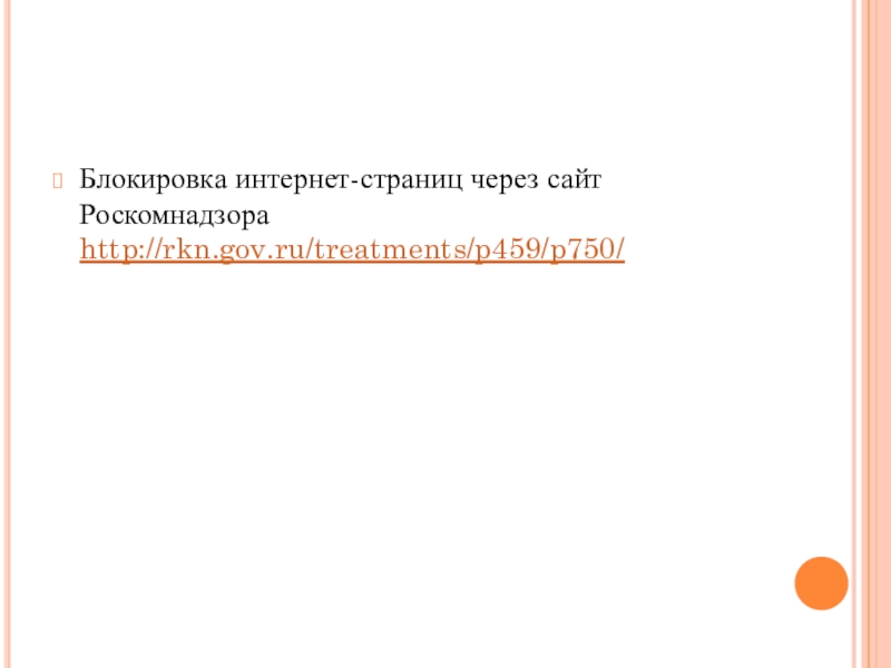 Слайд 46Блокировка интернет-страниц через сайт Роскомнадзора http://rkn.gov.ru/treatments/p459/p750/