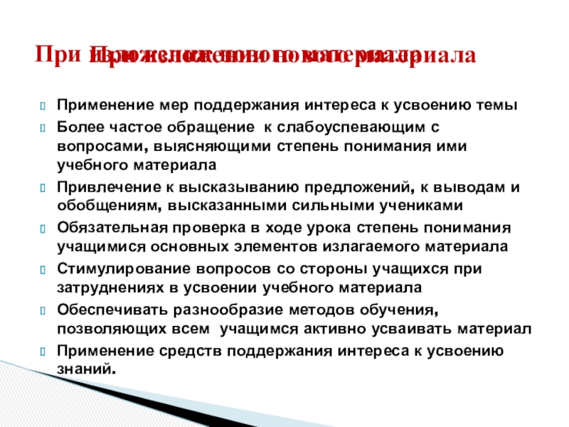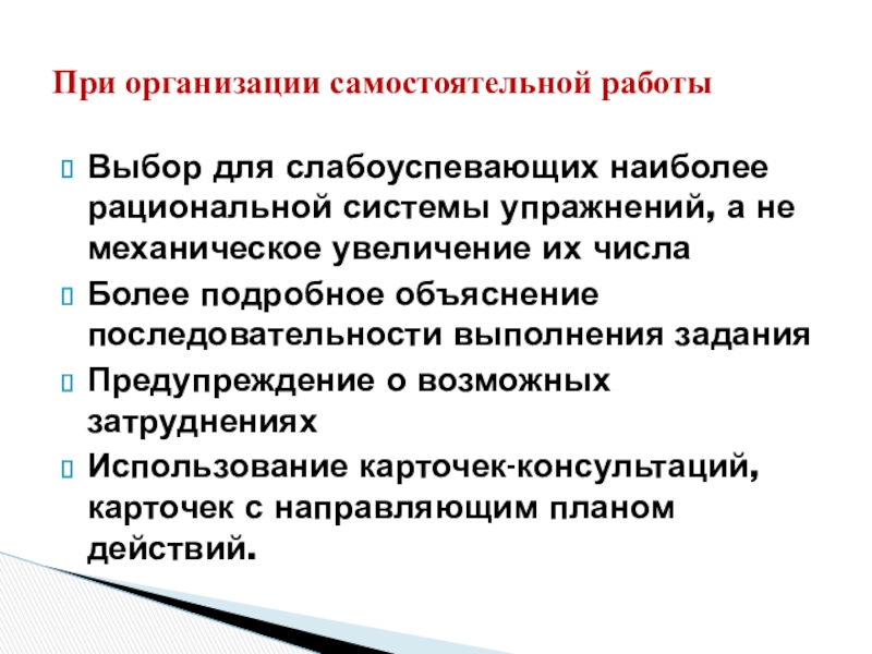 Стержнем работы является индивидуальный подход к ученику, который проявляется: