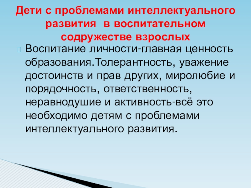 Дети с проблемами интеллектуального развития в воспитательном содружестве взрослых