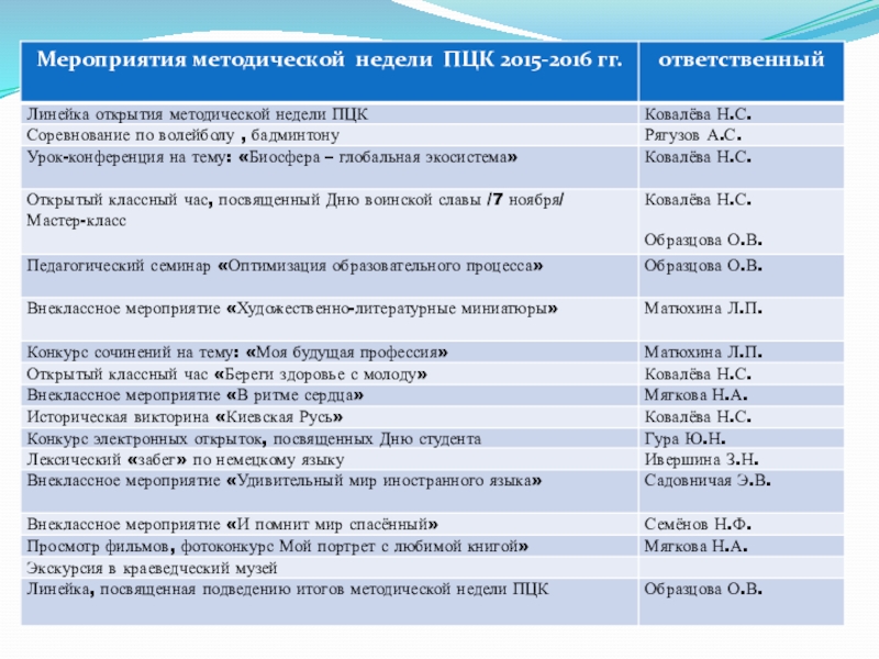 Отчет составлен председателем ПЦК Ковалёвой Н.С.