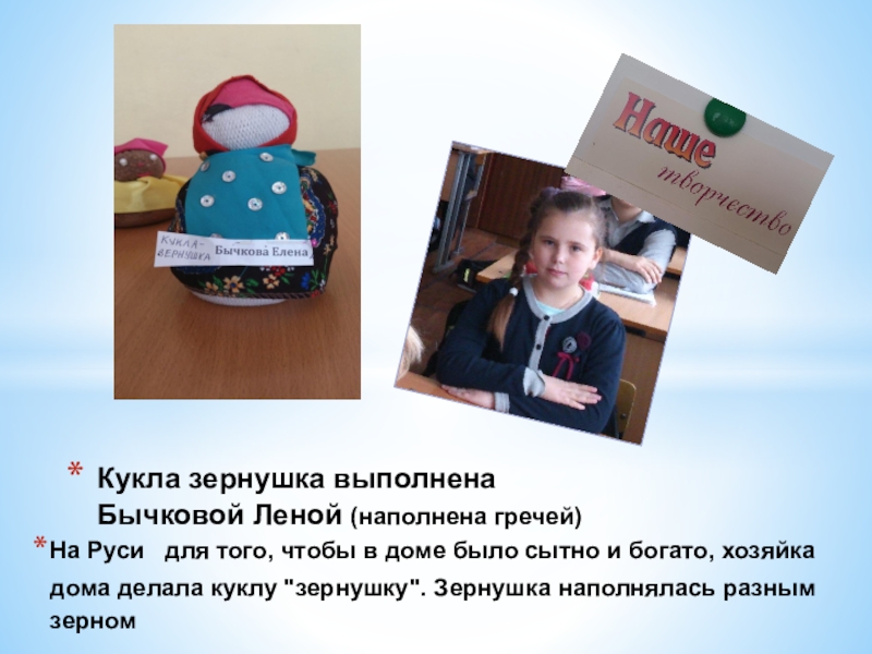 Кукла зернушка выполнена Бычковой Леной (наполнена гречей)