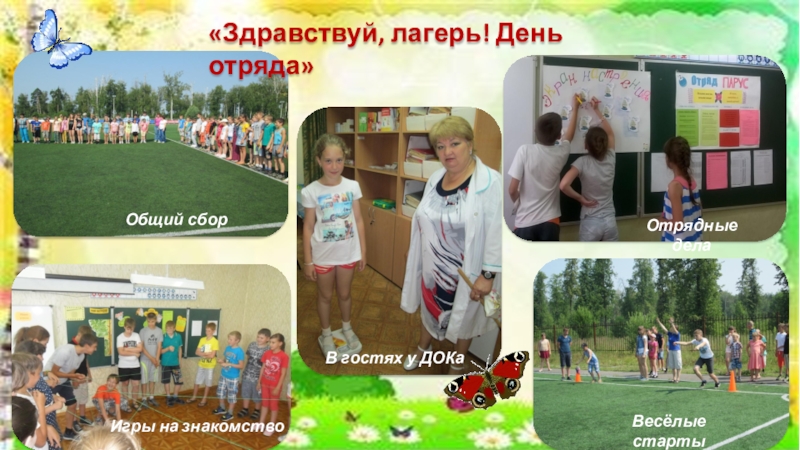 Общий сборОбщий сборОтрядные делаИгры на знакомствоВесёлые стартыВ гостях у ДОКа«Здравствуй, лагерь! День отряда»