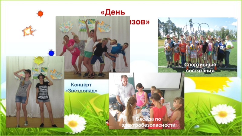 «День сюрпризов»Беседа по электробезопасностиСпортивные состязанияКонцерт «Звездопад»