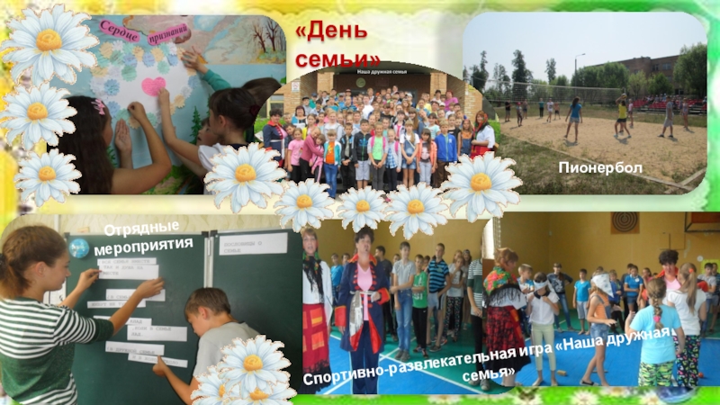 «День семьи»ПионерболОтрядные мероприятияСпортивно-развлекательная игра «Наша дружная семья»