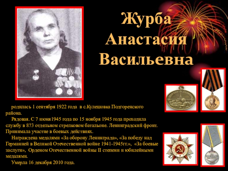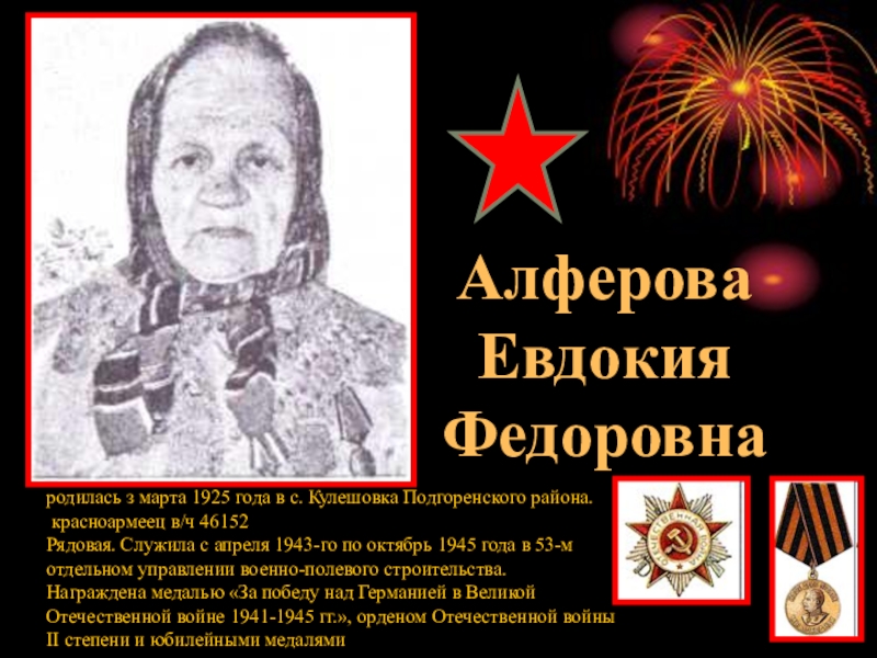 Колосарева Раиса Прокофьевна, 1923 г.р., красноармеец в/ч 46152, в с. Кулешовка.
