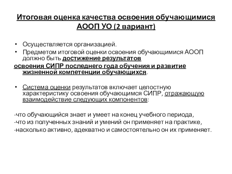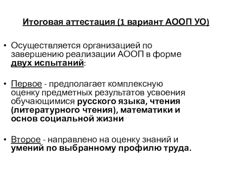 Слайд 61Итоговая аттестация (1 вариант АООП УО)
