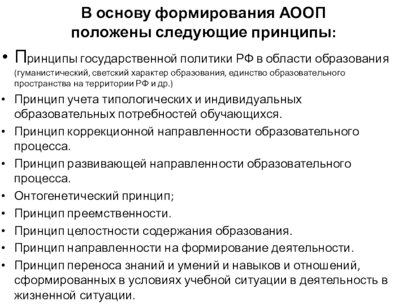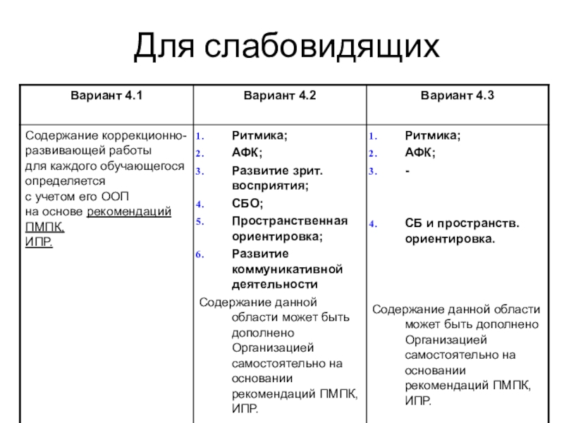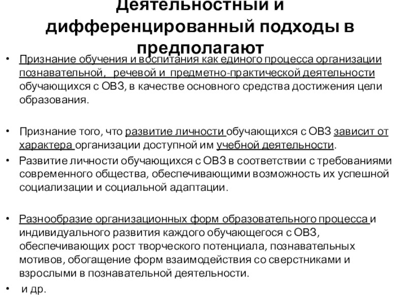 Закрепляют возможности интегрированного (инклюзивного) обучения всех категорий детей с ОВЗ.