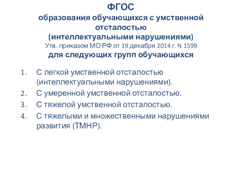 Федеральный государственный образовательный стандарт образования обучающихся с умственной отсталостью (интеллектуальными нарушениями)