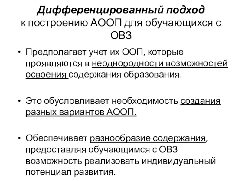 разными группами обучающихся с ОВЗ дифференцированно с учетом их особых образовательных потребностей