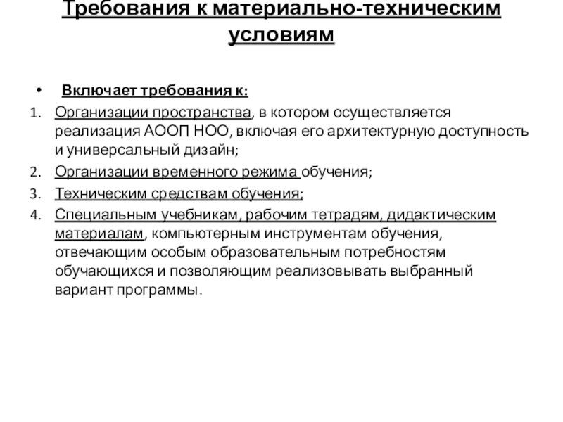 реализация АООП НОО, включая его архитектурную доступность и универсальный дизайн;