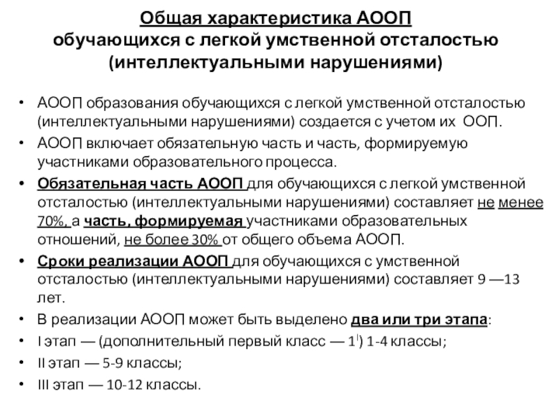 Определения требований к результатам освоения обучающимися с умственной отсталостью (интеллектуальными нарушениями) АООП.