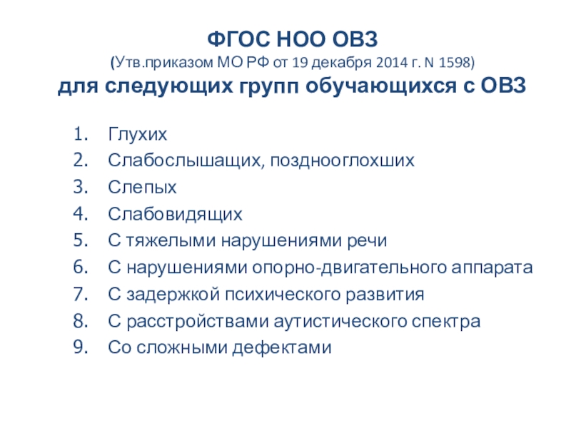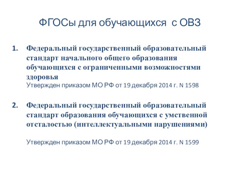 Слайд 2ФГОСы для обучающихся с ОВЗ