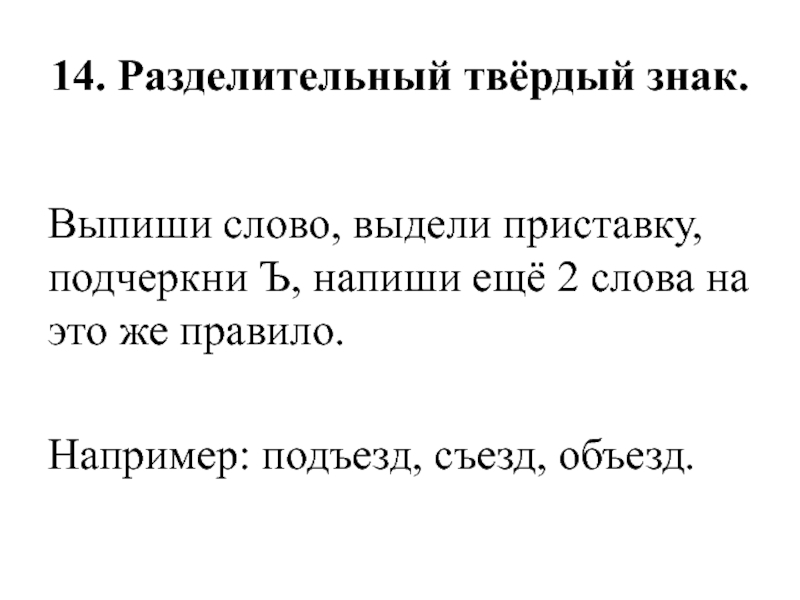 Выпиши слово, выдели приставку, подчеркни Ъ, напиши