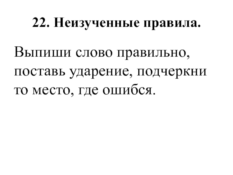 Выпиши слово правильно, поставь ударение, подчеркни то место,
