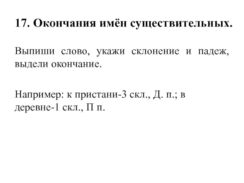 Например: к пристани-3 скл., Д. п.; в деревне-1 скл., П п.