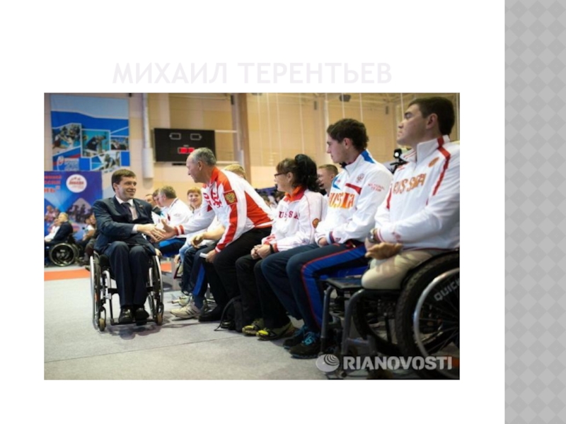 на соревнованиях по лыжному двоеборью он неудачно прыгнул с трамплина и получил тяжелый компрессионный перелом позвоночника. В результате остался парализован ниже пояса. Отчаяние наступило, когда выяснилось, что инвалидных кресел тогда еще в СССР невозможно ни купить, ни достать. Год ползал по квартире на коленях. Шесть лет молодой парень по сути безвылазно провел в четырех стенах. Все изменилось после знакомства с тренером Ириной Громовой. В 1994 году Михаил дебютировал на Паралимпийских играх в Лиллехаммере. В лыжных гонках и соревнованиях по биатлону, на всех дистанциях уверенно занимал первые места. В Нагано в 1998 году Михаилу удалось завоевать две серебряные медали и одну бронзовую, а на Паралимпийских зимних играх в Солт-Лейк-Сити 2002 года на дистанции 10 км Тереньтев выиграл золото. В Турине в 2006 году Терентьев завоевал бронзовую медаль в биатлоне. Сегодня Михаил – генеральный секретарь Паралимпийского комитета России.