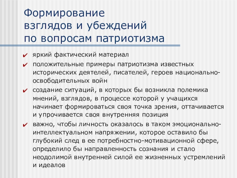 формирование патриотизма как чувства уважения, гордости и ответственности перед своим