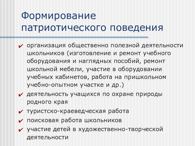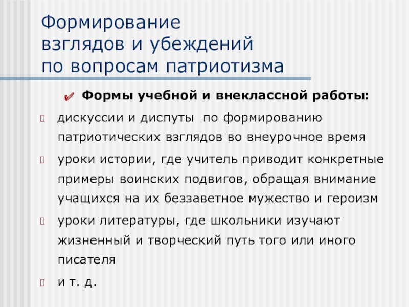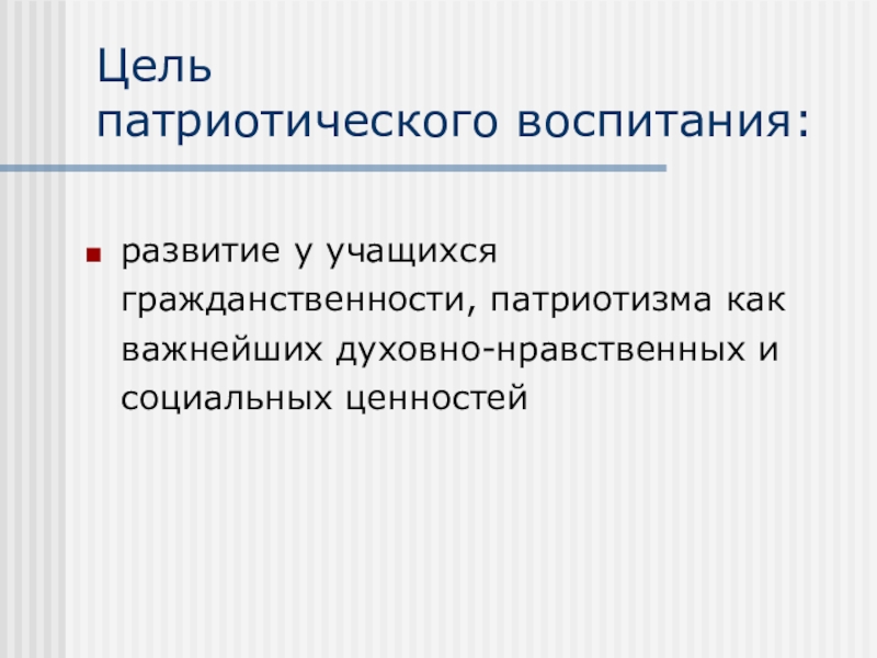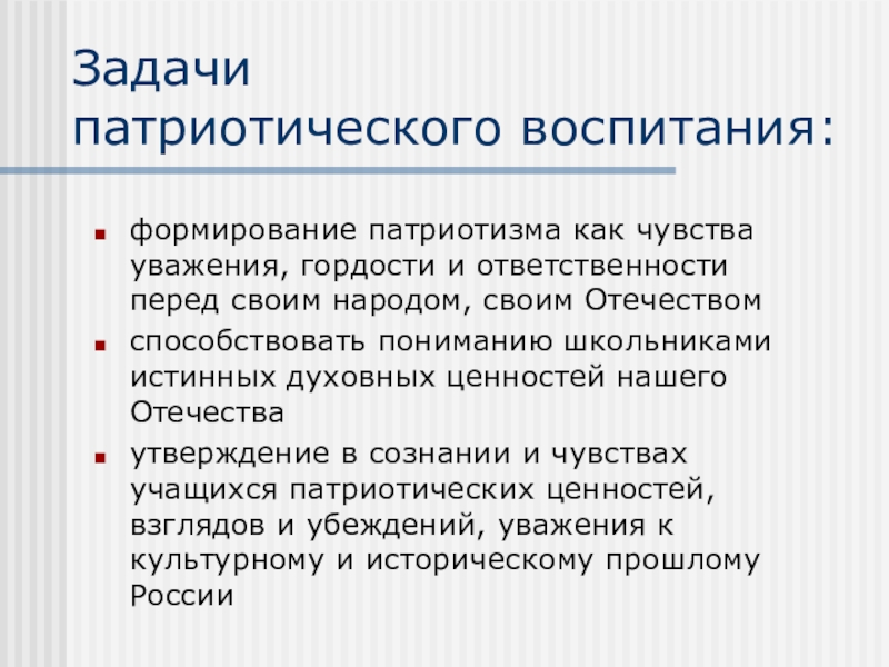 утверждение в сознании и чувствах учащихся патриотических ценностей, взглядов и убеждений, уважения к культурному и историческому прошлому России