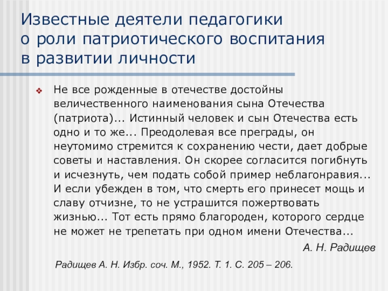 Слайд 4Известные деятели педагогики о роли патриотического воспитания в развитии личности