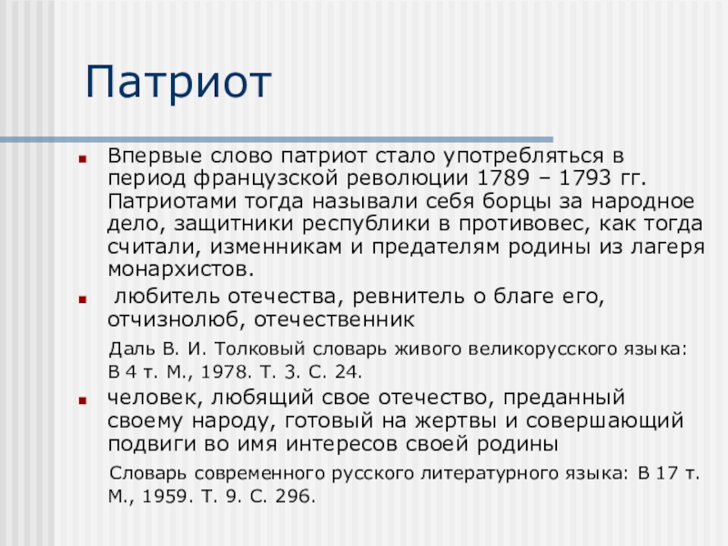 Впервые слово патриот стало употребляться в период французской революции 1789