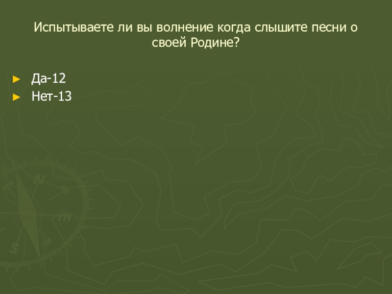 Слайд 15Испытываете ли вы волнение когда слышите песни о своей Родине?