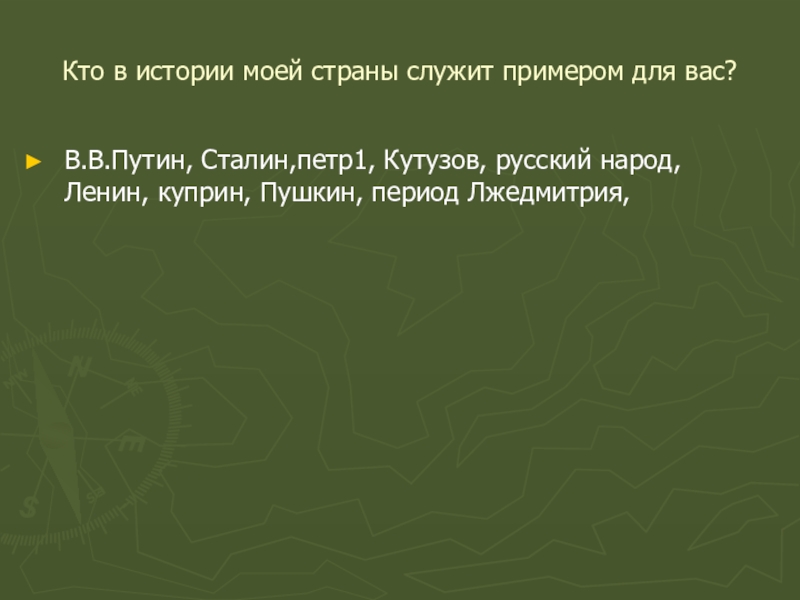 Слайд 19Кто в истории моей страны служит примером для вас?