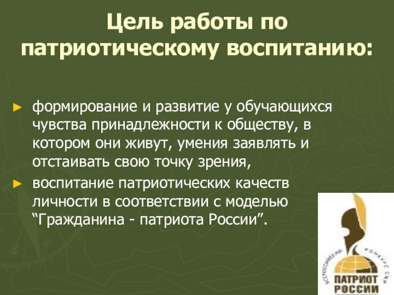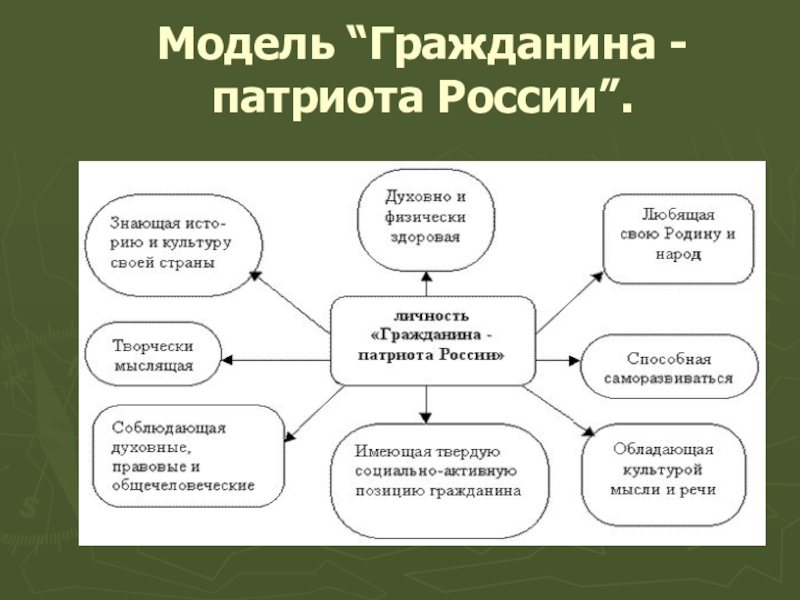 воспитание патриотических качеств личности в соответствии с моделью “Гражданина - патриота России”.