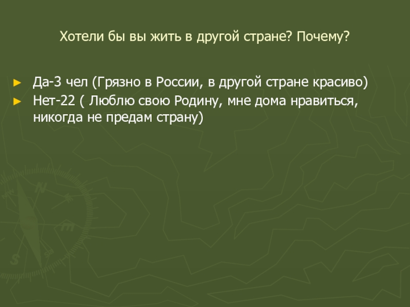 Слайд 17Хотели бы вы жить в другой стране? Почему?