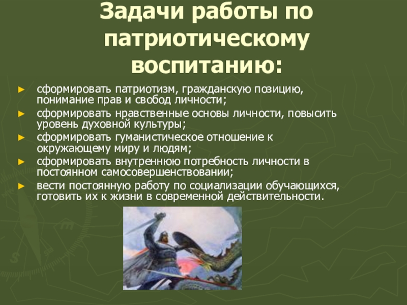 Слайд 4Задачи работы по патриотическому воспитанию: